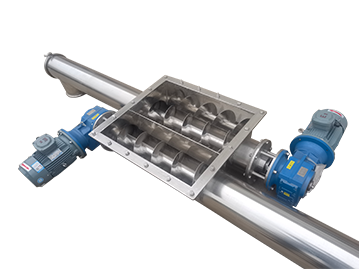连续式无重力混合机采用卧式W型筒体,内设两组反向旋转的平行轴,两轴上装有相反角度的浆叶(称双卧轴),连续不间断运行时带动物料达到抛物线的最高点使物料瞬间失重,称之为无重力点,在该点不同粒径、不同密度的物料实现均匀混合,亦称无重力双轴浆叶混合机,两侧的物料即反向运动,物料相互落入对面区域内,中央部位形成对流,从而确保物料径向、环向、轴向三向抛洒运动,形成复合循环,迅速达到均匀混合,设计混合时间1~3分钟,混合后由底部出料。